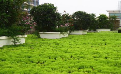 本項目采用立體綠化新技術——自動調濕式綠化技術,該技術獲得“世界立體綠化創新技術金獎”,其核心是讓植物自己對用水量進行管理,植物不回因為缺水影響生長,也不會因為澆水過多而澇死,具備自動調濕、雨水收集、防水防滲等一系列功能,節水率高達85%。屋頂四周采用自動調濕集成種植箱,種植小喬木、灌木、花卉等,營造豐富的屋頂花園景觀。基質層厚度只需10-25cm,較小的荷載讓老建筑的屋頂綠化改造提供了可能。